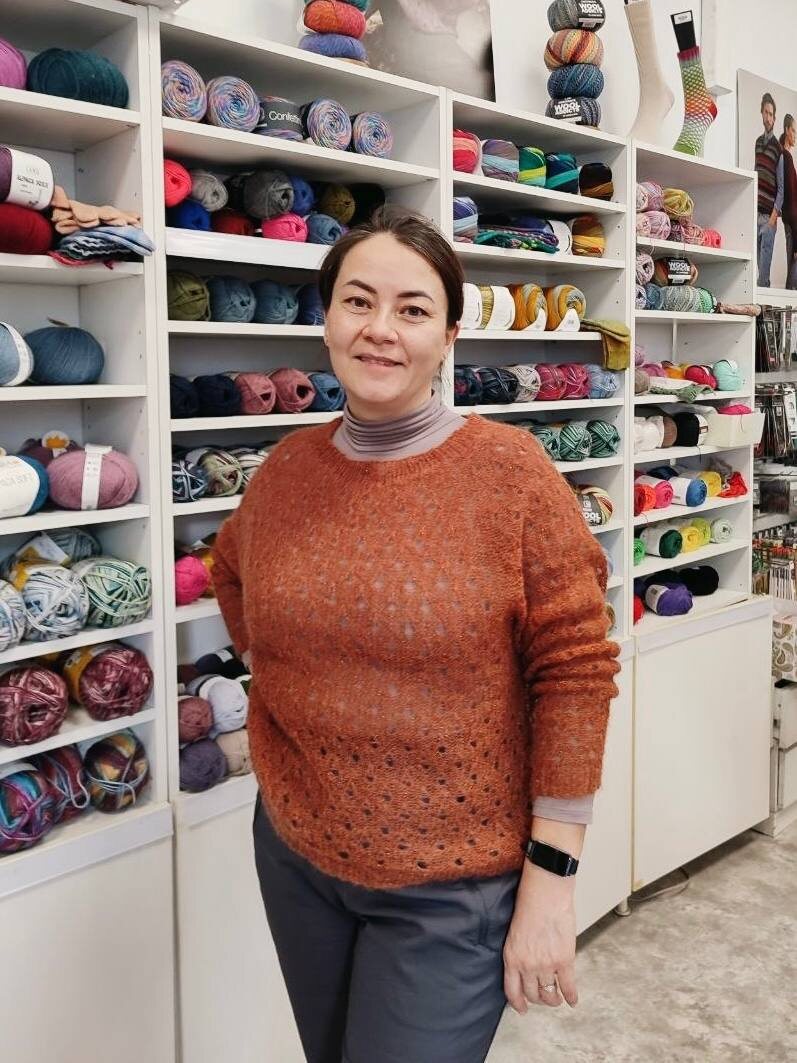 На днях к нам приезжала покупательница из Челябинска, Айна, в своей прекрасной паутинке из нашего мохера с люрексом Softlux