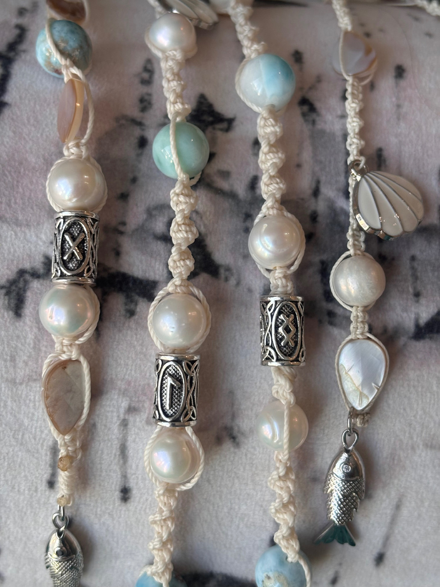 Сочетание в этой Луле, руны плодородия Ингуз и камней «водной» стихии (жемчуга и ларимара) создает образ невероятно мягкой, но мощной женской созидательной энергии.