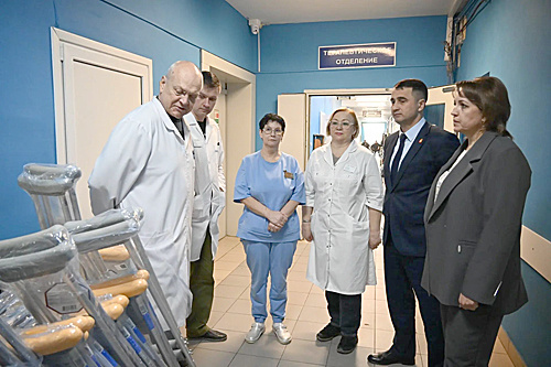 Технические средства реабилитации по обращению Администраций Аксайского района и Аксайского городского поселения приобрели на средства инвестора – АО «Судостроительный-судоремонтный завод «Мидель». Передача средств реабилитации. / Фото Юлии Фроловой Во встрече с представителями медучреждения приняли участие заместитель главы Администрации Аксайского района по социальным вопросам Ольга Николаевна Пушкина и глава администрации города Аксая Евгений Николаевич Камфарин. Совместно они обсудили вопросы дальнейшей поддержки и выразили благодарность медработникам за профессиональный и самоотверженный труд по лечению и реабилитации военнослужащих – участников специальной военной операции. Отдельные слова благодарности были адресованы коллективу завода «Мидель» и его руководителю Геворгу Ваградовичу Ваградяну. Предприятие – пример социально ответственного бизнеса, которое на постоянной основе уже четыре года оказывает деятельную и ощутимую поддержку военнослужащим, которые отстаивают интересы го