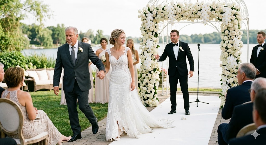 Алиса стояла рядом с Вадимом. По сценарию, отец должен был поцеловать дочь в щеку, вложить ее руку в руку жениха и отойти на свое место. Но когда Михаил Иванович сделал шаг вперед, его нога запуталась в бесконечных слоях тяжелого фатина Алисиного платья.