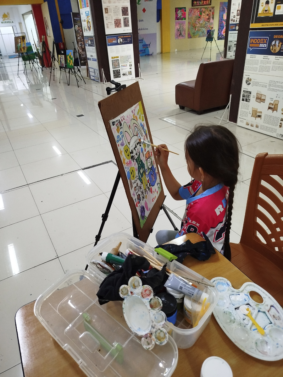 В субботу ходили рисовать на нашу выставку. Амира доделывала их с Зарой картину - опробовала новые кисточки
