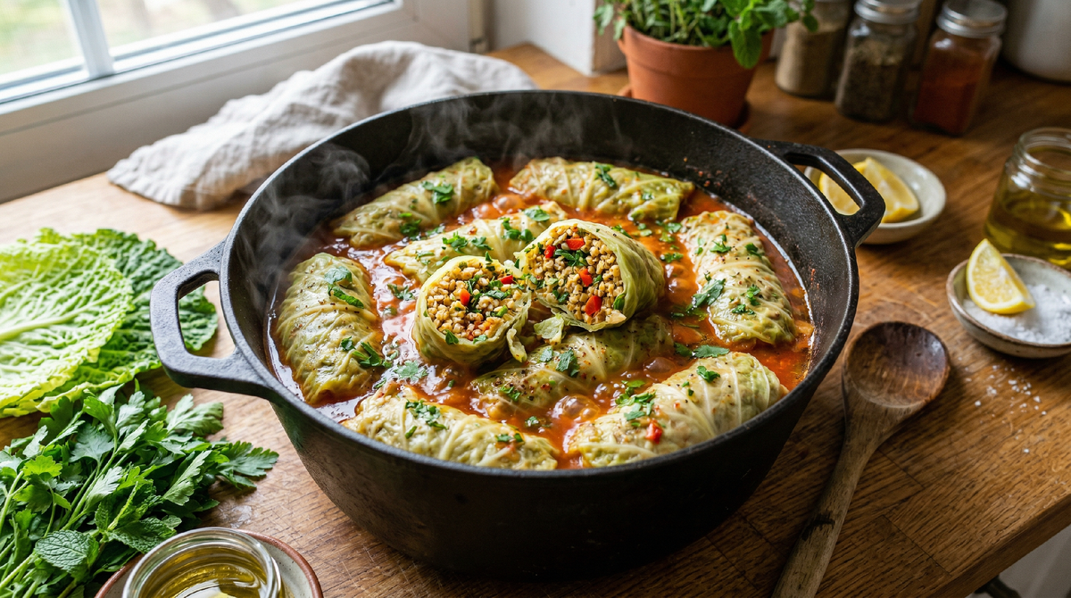 Однажды она пригласила меня к себе на обед. Я зашла в её квартиру и тут же почувствовала умопомрачительный аромат — пахло чем-то травяным, пряным и одновременно домашним. На плите стояла огромная кастрюля, из-под крышки которой вырывался пар. Ануш сказала, что приготовила постную толму, потому что у них в семье как раз был период поста. Я, если честно, на тот момент знала только классическую долму — ну, ту самую, из виноградных листьев с мясным фаршем. А тут оказалось, что существует целый отдельный мир армянской постной кухни, и толма в капустных листьях с булгуром занимает в нём особое, почти священное место.