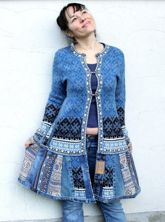 А если у вас завалялся старый свитер, который уже не носится, но выбросить жалко? От него можно взять рукава или даже целые полочки и соединить с джинсовой основой. Получатся тёплые, уютные вещи для межсезонья.