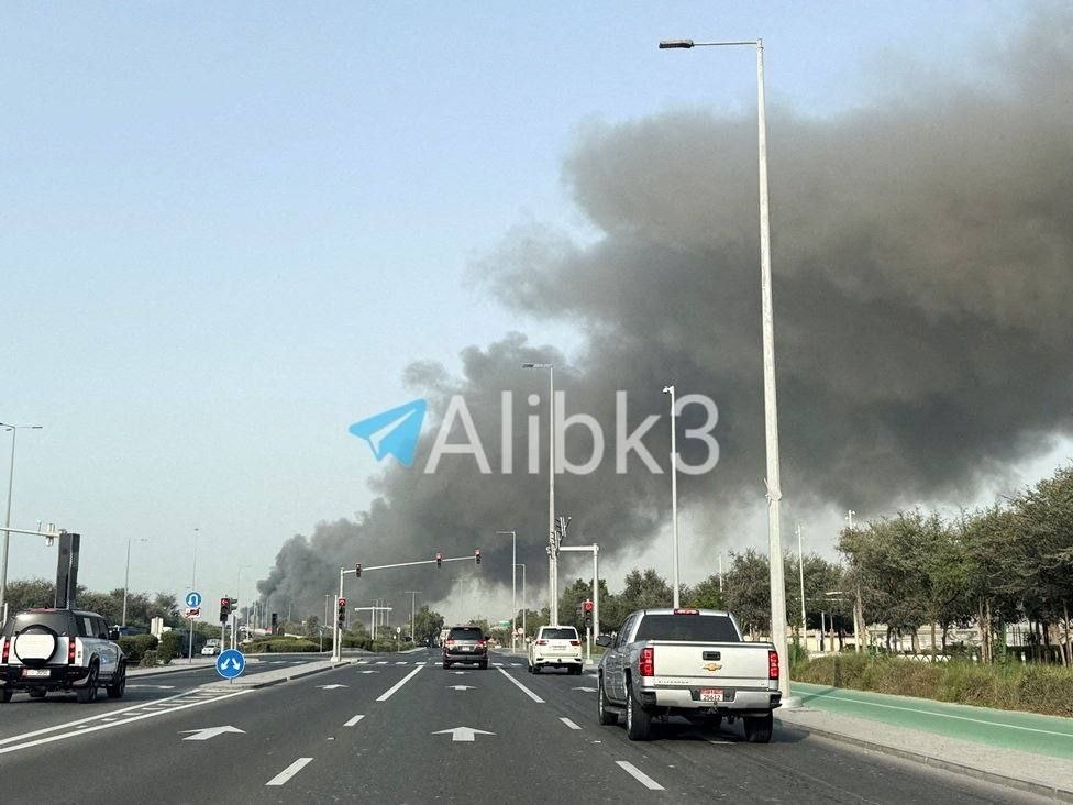 Промзона Абу-Даби выглядит сейчас вот так: на месте уже фиксируют последствия падения обломков после перехвата.