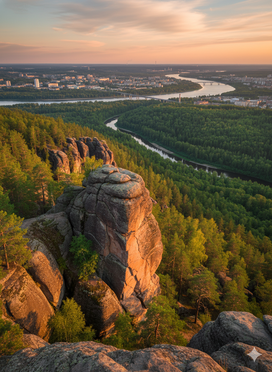 Главная природная жемчужина не только Красноярска, но и всей Сибири — скальные останцы причудливых форм прямо на окраине города. Сюда едут ради захватывающих видов, чистого таёжного воздуха и ни с чем не сравнимого ощущения дикой природы в двух шагах от цивилизации.