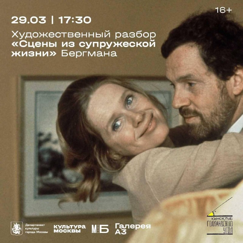 психологический разбор «Сцены из супружеской жизни» Ингмара Бергмана. Разбор проведёт психолог, философ и радиоведущий Дмитрий Немчин 29 марта в 17:30.