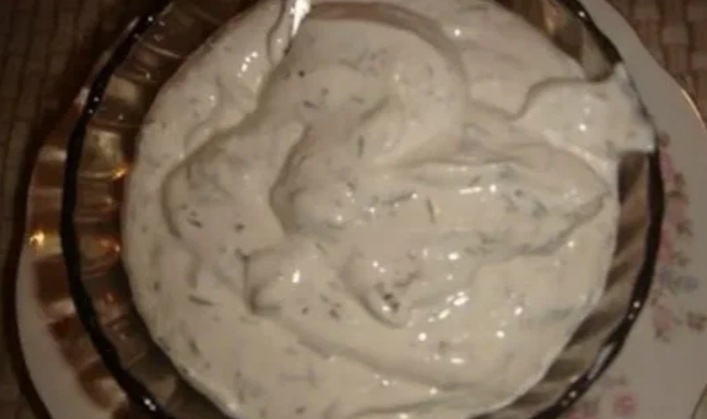 - Перемешать. Тщательно перемешать соус венчиком или ложкой, чтобы масса стала однородной. Если хочется - добавить немного измельчённой зелени.