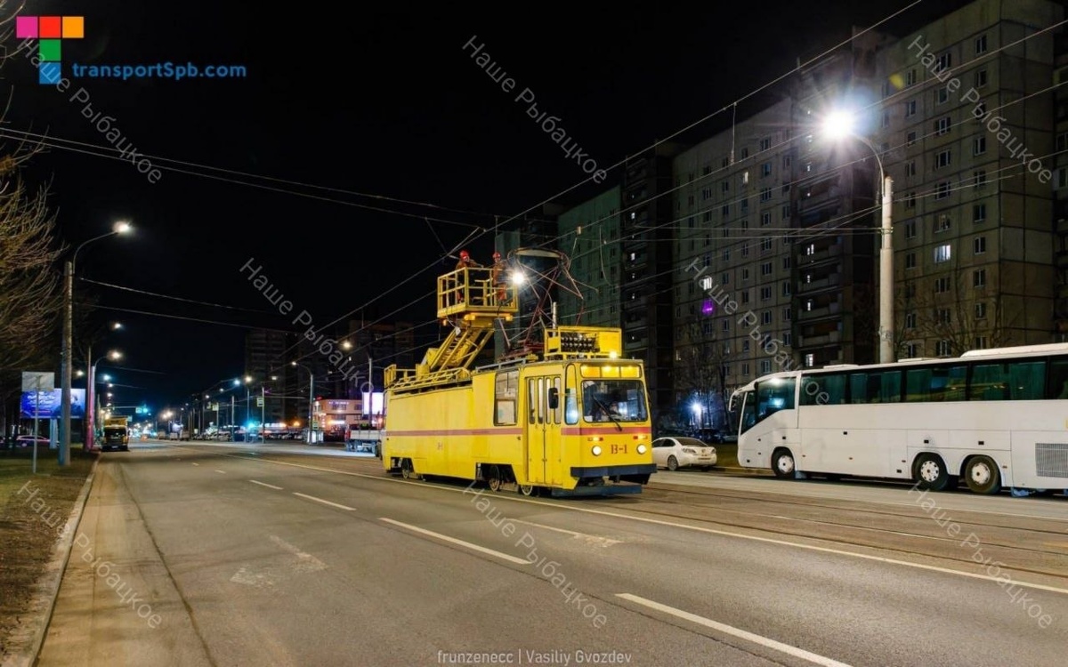 По Шлиссельбургскому проспекту в ночной тиши неспешно ползёт служебный трамвай — этакая стальная сова с вышкой вместо клюва