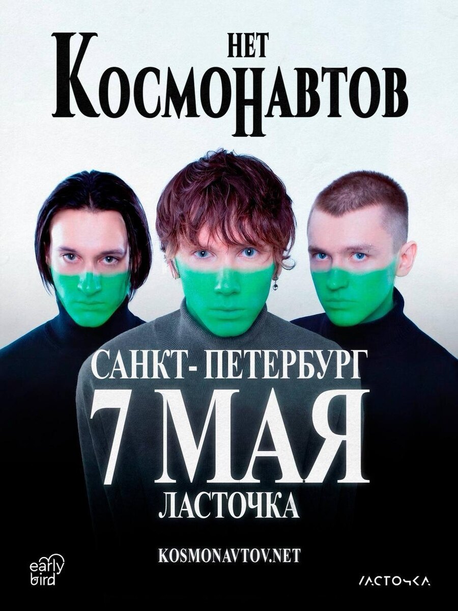 🎤 – КОСМОНАВТОВ НЕТ 📍 – «Ласточка», Санкт-Петербург, Транспортный пер. д. 10Л 🗓 – 7 мая 💵 – от 1 390 руб. 🔗 – билеты (16+) #концерты #билетынаконцерт #космонавтовнет #санктпетербург #ласточкаспб 👉 Список концертов: март • апрель • май @est_prohodka