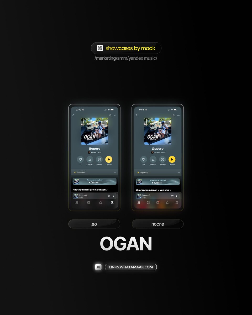 ❤️ Для кого? OGAN 🔼 Что было сделано? Комплексное продвижение трека с целью увеличения прослушиваний и вовлеченности 🛒 Заказать 🔍 Другие услуги ℹ️ #яндексмузыка #yandexmusic 🔗 maak® × подробнее • ⚡️ boost