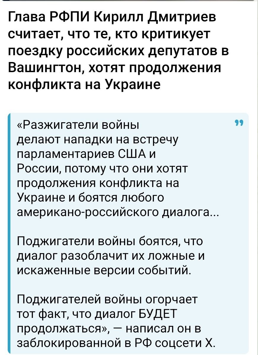 Носки получили? Получили. Колу попили? Попили. Кружок дружбы организовали? Организовали. Своими лицами поторговали? Поторговали. Санкции отменили? Не отменили. Какие ещё будут вопросы у частного лица Дмитриева? Пусть спасибо скажет, что его в России пока на уйх не посылают😉