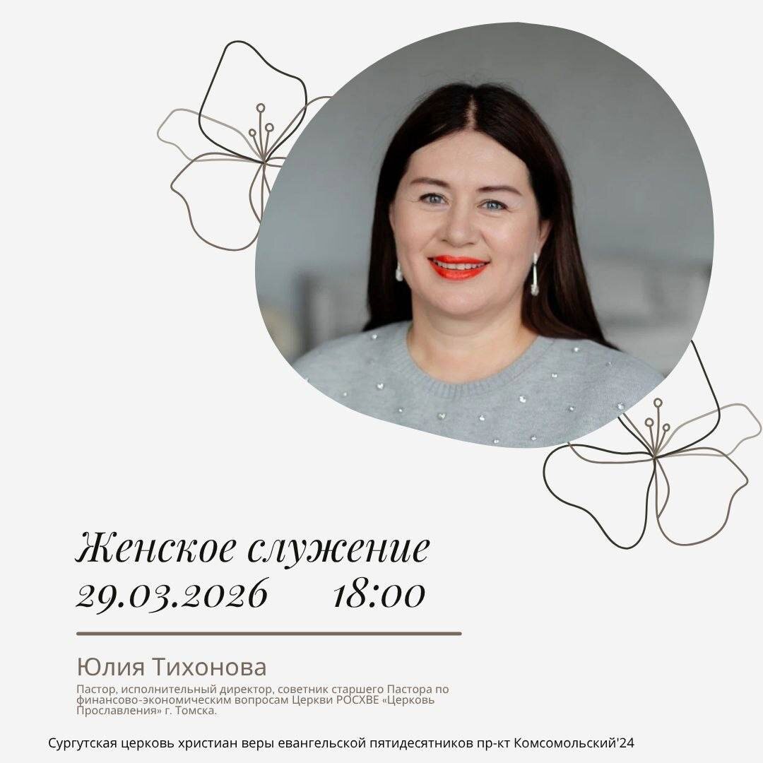 🩷🩷🩷🩷🩷🩷 Драгоценные сестрички, завтра в здании нашей церкви состоится женское служение! 🤩Спикер встречи наша дорогая гостья - Юлия Геннадьевна Тихонова! 👧 18:00 пр-кт Комсомольский’24 Берите с собой хорошее настроение, подруг или родственниц. Это время для отдыха и назидания.