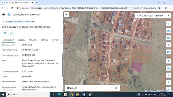 индивидуального жилищного строительства", адрес: Республика Татарстан, Заинский муниципальный район, г. Заинск, ул. Тихая аллея Канал: Госземля Республика Татарстан Область: Респ Татарстан Район: м.р-н Заинский Населенный пункт: г.п. город Заинск, г Заинск, ул Тихая аллея Локация: Смотреть на карте ВРИ: Для индивидуального жилищного строительства Кадастровый номер: 16:48:060402:663 Кадастровая стоимость: - Вид сделки: Аренда Площадь: 1500 м² Начальная цена: - руб. Дата завершения: 27.04.2026 Подробнее: ГИС ТОРГИ #госземля #земляотгосударства #земля #земельныйучасток #земельныеторги #торги #аукцион #арендаземли #аренда #республикататарстан