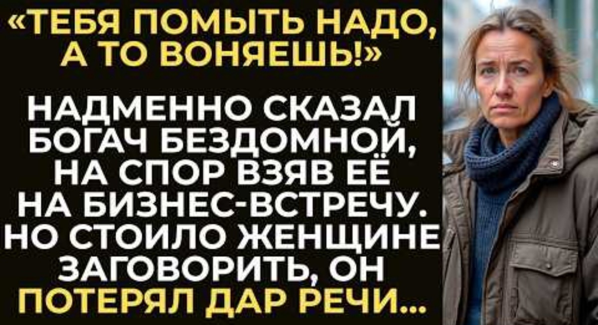 Ледяной пронизывающий ветер безжалостно хлестал по пустынным улицам делового центра, заставляя редких вечерних прохожих глубже прятать лица в воротники дорогих шерстяных пальто. Для тех, кто торопливо спешил в теплые салоны своих премиальных автомобилей или уютные, залитые мягким светом вестибюли стеклянных небоскребов, этот вечер казался просто неприятным погодным недоразумением. Но для женщины, сжавшейся в крошечный дрожащий комок у массивной гранитной стены респектабельного ресторана, этот ветер был настоящим физическим испытанием, высасывающим последние крупицы тепла. Она сидела на куске старого, промерзшего насквозь картона, плотно кутаясь в бесформенные лохмотья, которые когда-то, в прошлой, безвозвратно ушедшей жизни, вероятно, назывались добротной зимней курткой. Ее тонкие пальцы, огрубевшие и покрытые сетью мелких трещин, судорожно сжимали истрепанные края выцветшего шарфа. Она давно уже перестала просить милостыню. Голос окончательно сел от постоянных затяжных простуд, а в потухших глазах больше не было той отчаянной искры надежды, которая иногда заставляет спешащих людей притормозить и бросить пару монет в протянутую руку. Теперь в ее взгляде читалась лишь глухая, беспросветная и тяжелая усталость. Женщина привыкла к тому, что для остального благополучного мира она превратилась в невидимку, в досадное серое пятно на идеальном фасаде успешного мегаполиса. Прохожие брезгливо отворачивались, брезгливо ускоряли шаг, а некоторые сквозь зубы цедили злые оскорбления, словно ее тотальная нищета была заразной проказой.