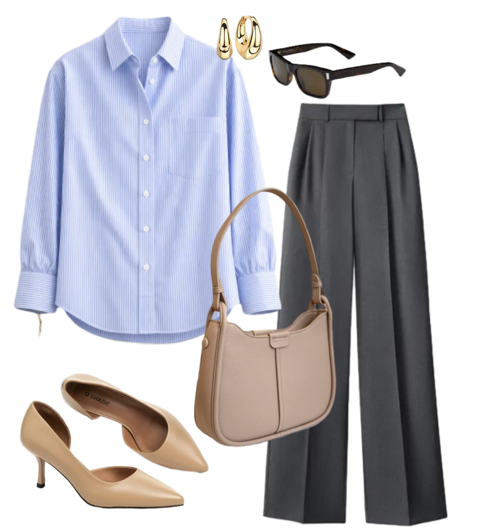 Я всегда в поиске универсальных вещей, которые помогут создать множество стильных комплектов без лишних затрат. И вот, на Wildberries я нашла настоящую находку – трендовую рубашку в мелкую белую полоску на голубом фоне. Она сразу же запала мне в душу своей классической элегантностью и потенциалом для самых разнообразных сочетаний. Эта рубашка – настоящий хамелеон, способный трансформироваться от делового шика до непринужденного кэжуала. Я не могла удержаться и тут же начала экспериментировать, создавая образы на все случаи весенней жизни. В первом комплекте к голубой рубашке я добавила серые брюки со стрелками. Такой союз выглядит не только статусно, но и прекрасно вытягивает силуэт, создавая стройную вертикаль. Чтобы усилить этот эффект и добавить элегантности, я выбрала бежевые лодочки. Этот образ идеален для офиса или важной встречи, где хочется выглядеть собранно и уверенно. В этом образе я смиксовала голубую рубашку с серой юбкой-карандаш. В прохладную весеннюю погоду светлый дж