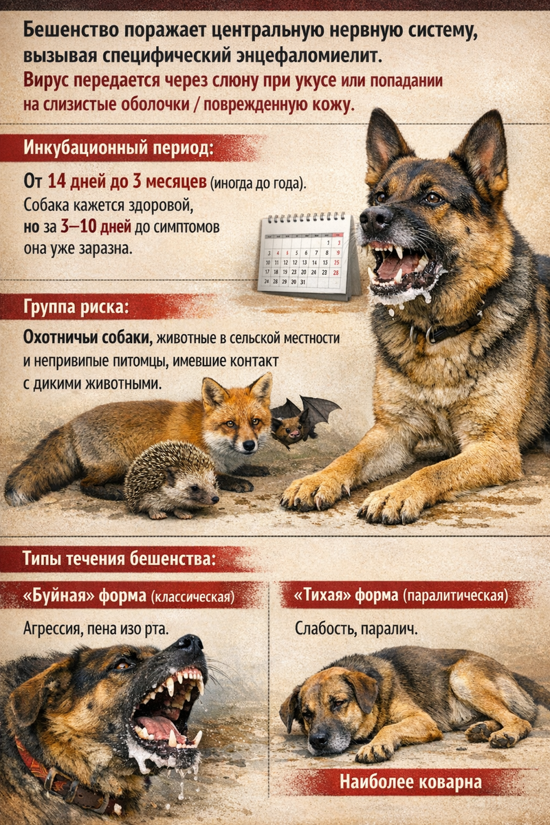 Бешенство (рабиес) — это самое опасное вирусное заболевание, общее для животных и человека, которое в 100% случаев заканчивается летальным исходом при появлении клинических признаков. Как кинолог, я обязан подчеркнуть: здесь нет места «народным методам» или ожиданию. Ваша наблюдательность — единственный шанс на безопасность вашей семьи.