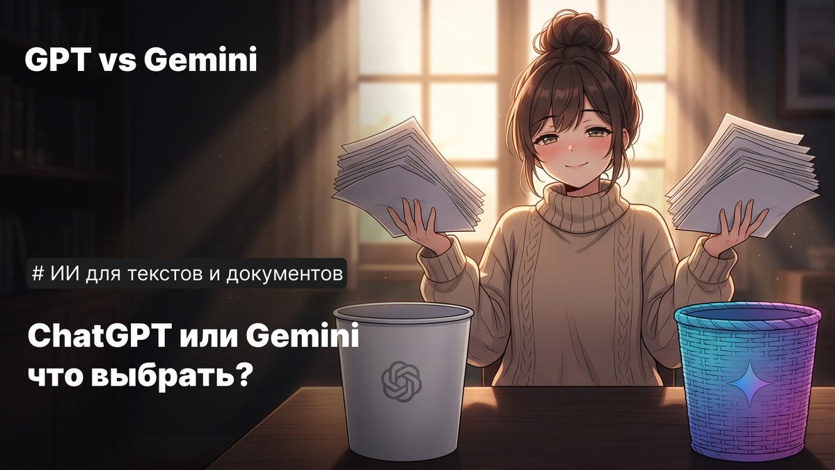 ChatGPT — более стабильный. Он реже выдумывает факты и не так сильно капризничает из-за VPN. Однако он хуже работает с текстами (выдаёт слишком «ИИшный» стиль), а его экосистема проигрывает Gemini в качестве интеграций.