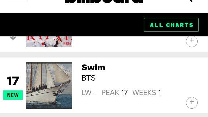 🌷 Песня "Swim" дебютировала на 17-м месте в чарте Billboard Japan Hot 100.