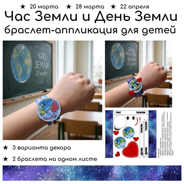 Поделка (браслет) ко Дню Земли (20 марта), Часу Земли (28 марта) и Международному дню Матери-Земли (22 апреля) (готовые шаблоны для печати).