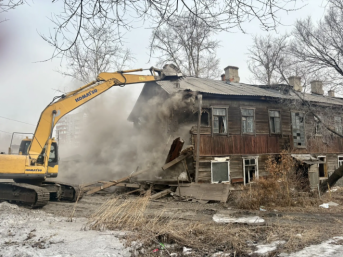 Под ковш экскаватора в Хабаровске попал ещё один ветхий дом