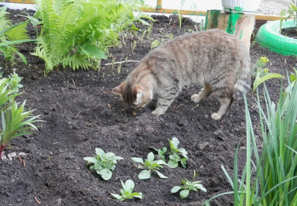 Тут всё просто. Мы старательно перекапываем землю, рыхлим, удобряем. Для кота это как пятизвёздочный отель с идеальным песочком.