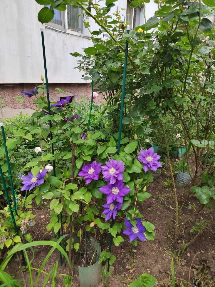 Опора устанавливается до посадки или сразу после нее . Диаметр элементов опоры не должен превышать 1,5–2 см — клематисы цепляются за опору черешками листьев и не могут обхватить толстые столбы .