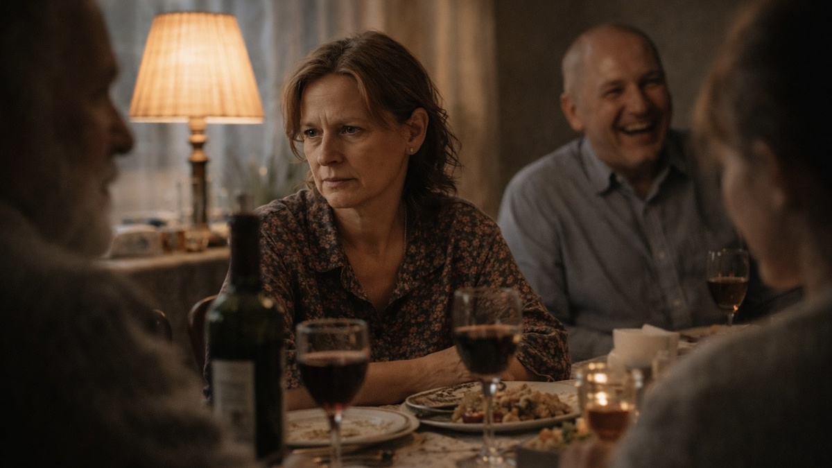 Сергей сидел напротив и смеялся над чьей-то шуткой - широко, по-настоящему, как человек, у которого всё в порядке. Ел мамину запеканку. Подливал себе компот. Рассказывал что-то про работу, как они сдали объект, как заказчик остался доволен, как вот-вот новый контракт.