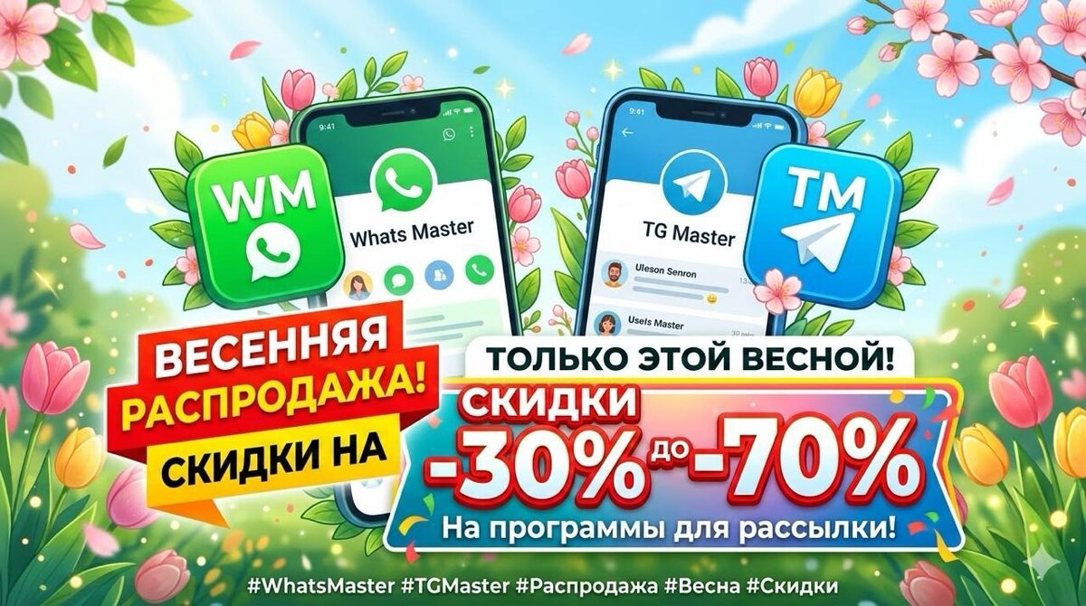 🎁 ВЕСЕННЯЯ РАСПРОДАЖА 🎁 Скидки от -30% до -70% 🎁 На TG Master и Whats Master