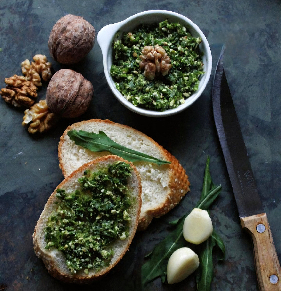 Зелёный песто — классика из зелёного базилика. Отлично подходит к пасте, ризотто.