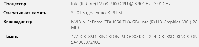 Компьютер, на котором установлена OS Windows 10 Pro имеет следующие характеристики: