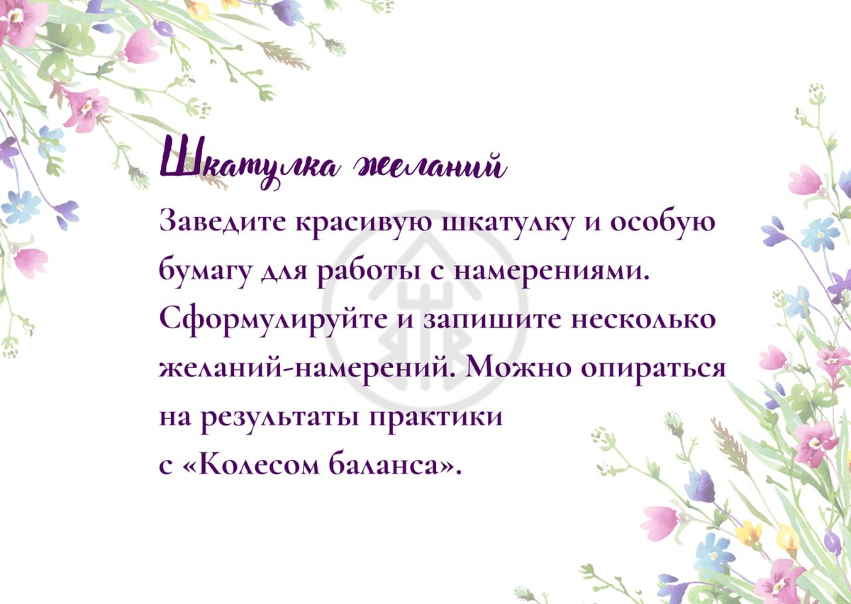 🌸Мини-практики для наполнения Алтаря любви 🌸 Листайте карусель🌸 А еще под этим постом вы найдете раскраску с мандалами, которую можно распечатать для практики с энергией цветов 🌸 Что такое намерение и как его правильно сформулировать 🌿Пишите о себе. Каждое ваше желание касается только вашей личности и вашей собственной реальности. 🌿 Пишите в настоящем времени, описывая желаемое как уже свершившееся. 🌿Каждое желание прописывайте в утвердительной форме, в позитивном ключе: избегайте отрицаний, частицы «не». 🌿Детализируйте и конкретизируйте желаемый результат. 🌿Прочувствуйте эмоции, которые подарит вам исполнение желаемого. 🌿Каждое желание должно быть экологичным — безопасным для вас и окружающих. 🍂Проверьте желание на истинность. Действительно ли это ваше желание, ваша цель? Или же она продиктована социальными ролями и установками, навязана извне? #алтарьлюбви
