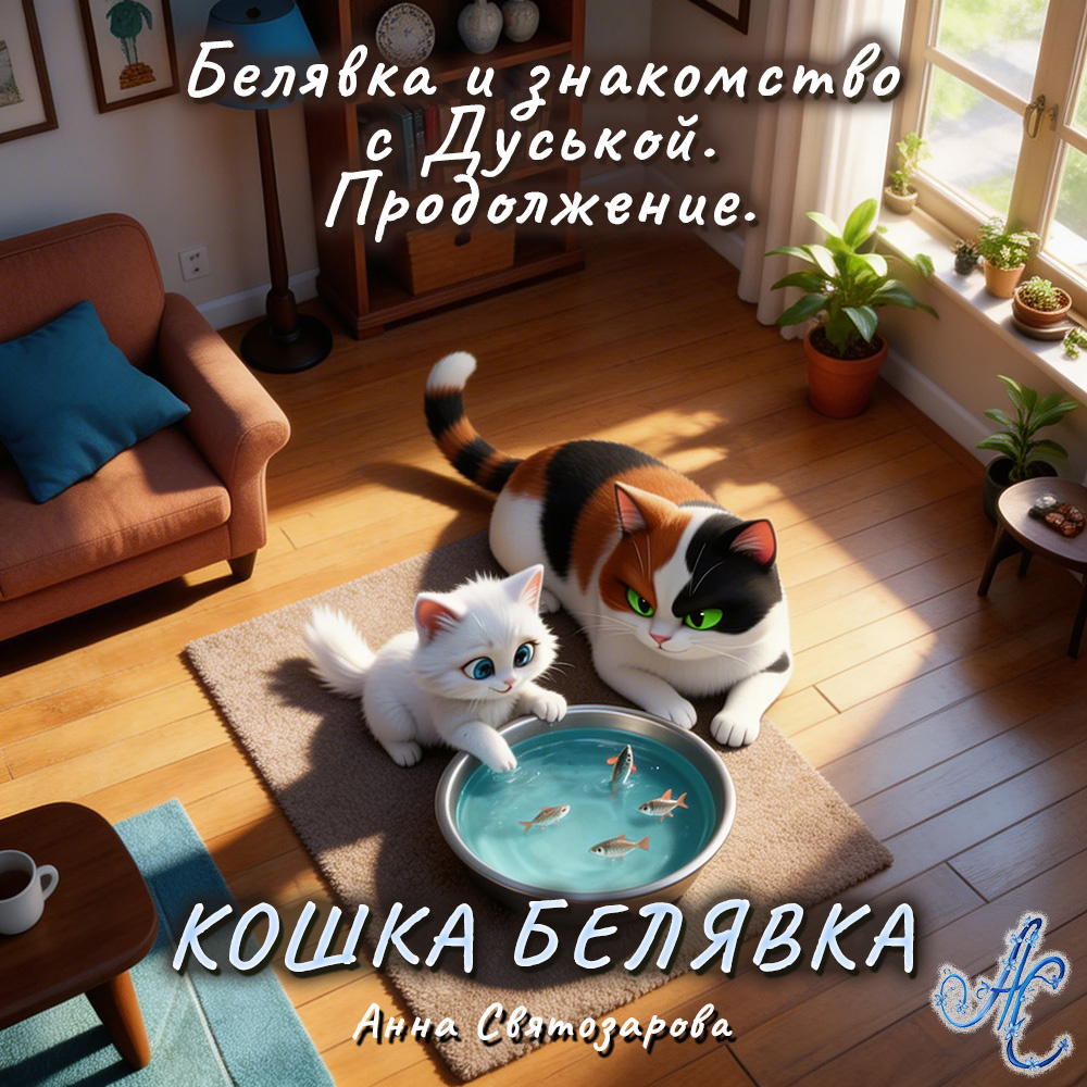 Так они и лежали вдвоём возле таза: белая Белявка и трёхцветная Дуська. Рыбки плавали в воде, иногда подплывая к поверхности и разглядывая двух кошек. Солнечные зайчики прыгали по стенам. Дедушка Сергей Владимирович с тётей Наташей и дядей Серёжей пили чай на кухне и радовались, что кошки подружились.