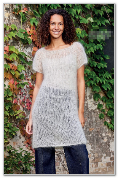 Перевод из журнала "Stickat & Sånt", № 2, 2026 год. Прозрачное платье из мягкого мохера. Это изящное платье настолько легкое и воздушное, что при надевании оно напоминает пушистое облако. Несложный проект, который вяжется лицевой гладью сверху вниз с регланными прибавками.