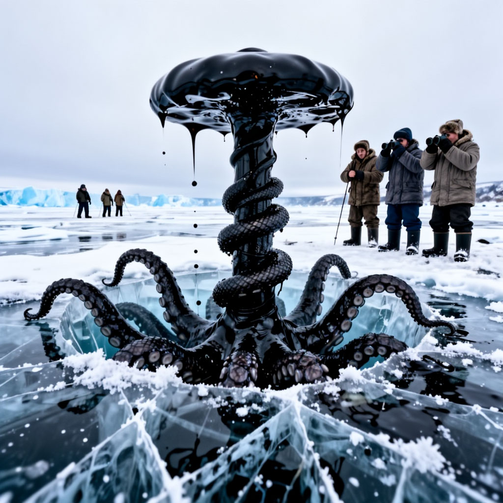 В глухой сибирской зиме 1986 года, когда морозы сковали Байкал в ледяную броню, а ветер выл, как раненый зверь, на озере произошло то, о чём до сих пор шепчутся в деревнях у костра, боясь даже произносить вслух. Дело было в конце февраля, когда лёд достиг своей максимальной толщины — более полутора метров. Местные рыбаки, как обычно, выходили на лёд, бурили лунки, ставили сети. Но в тот день всё пошло не так. Утром 23 февраля, примерно в 11:17 по местному времени, старожил по имени Иван Матвеевич, проживший на берегу Байкала всю жизнь, заметил странное: лёд в районе мыса Крестовский начал потрескивать неестественно — не резко, как обычно, а протяжно, будто что-то огромное давило изнутри. Он пошёл проверить, взяв с собой сына и соседа. Когда они подошли к трещине, та вдруг расширилась на несколько метров, и из неё с оглушительным рёвом, напоминающим стон десятков медведей, вырвался столб чёрной, маслянистой жидкости. История является вымышленной. Все совпадения случайны. Но не просто жи