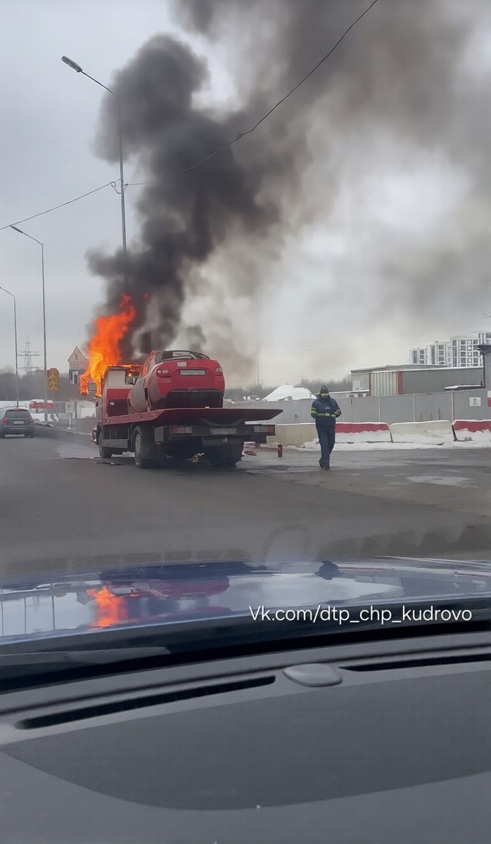 В районе «Меги» на дороге полностью сгорел салон эвакуатора