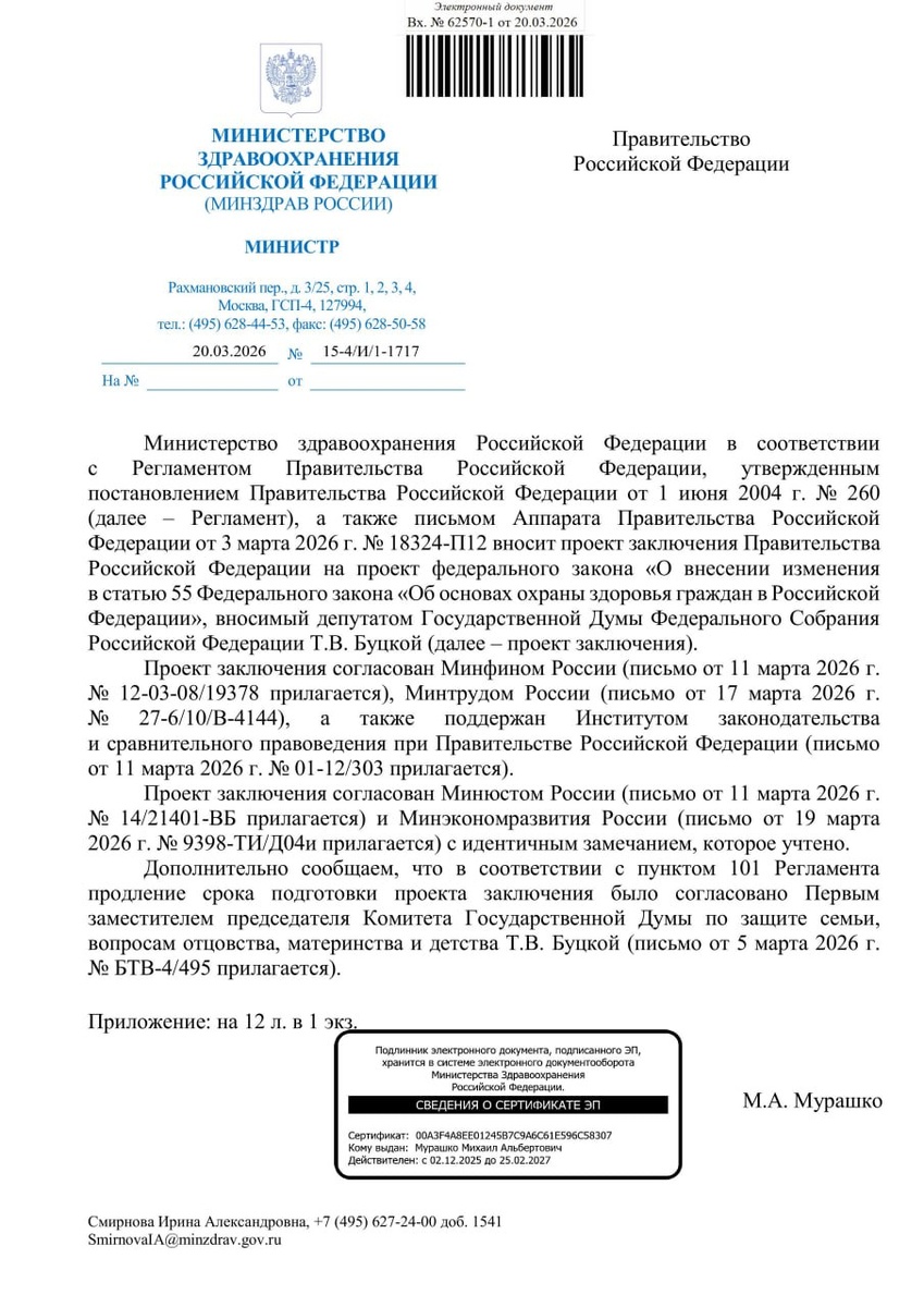 ✖️ Минздрав не поддержал мой законопроект о введении понятия "репродуктивный возраст" для мужчин