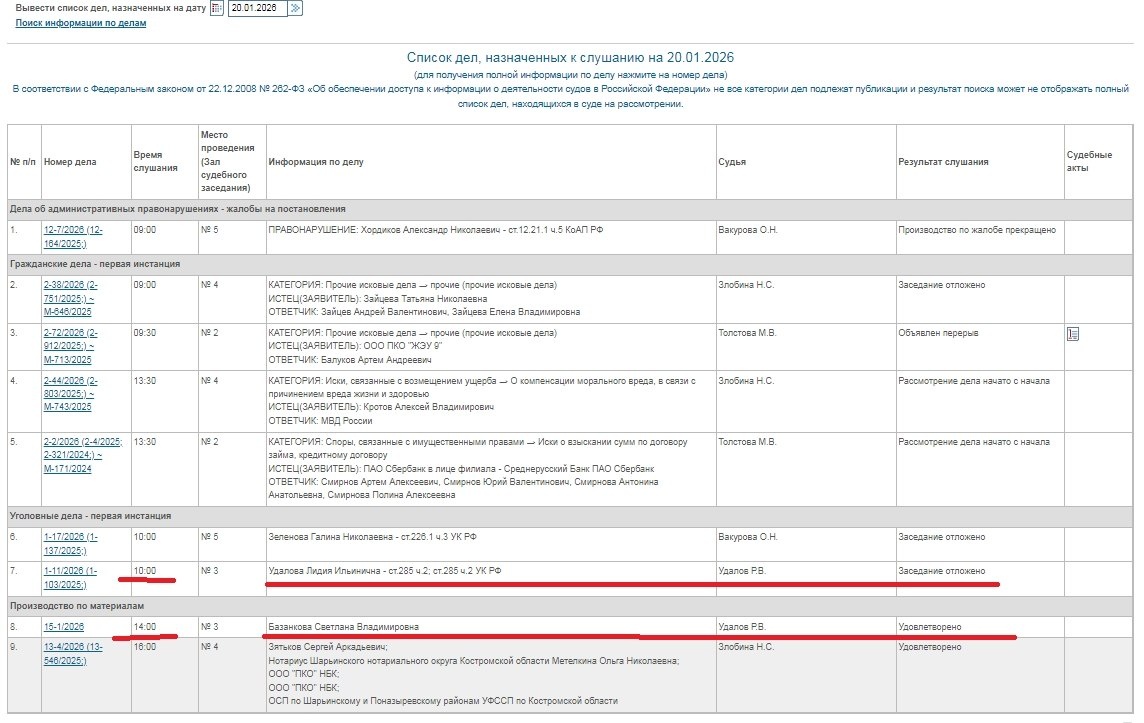». Жители города Шарья, наверное, уже слышали не раз, что нынешняя Глава города Удалова Л.И. проходит по уголовному делу в качестве обвиняемой. Данное дело уже рассматривается в суде около 8 месяцев, но окончательного решения так ещё и не было принято. Судебное заседание уже откладывалось 12 раз по разным причинам, но в данной публикации будет поднята ситуация, когда судебное заседание было отложено 20.01.2026 года по причине болезни рассматривающего дело судьи и однофамильца обвиняемой, а именно Удалова Р.В. Удалов Р.В. является талантливым человеком, ведь благодаря своим способностям он смог занять должность председателя Шарьинского районного суда. Хроника болезни судьи Удалова Р.В. 20.01.2026 на 10 – 00 было назначено судебное заседание по уголовному делу, в котором обвиняемой является нынешняя Глава города Шарья, но данное судебное заседание было отложено Шарья – столица мира Крупнейшее городское СМИ Источник: Открыть
