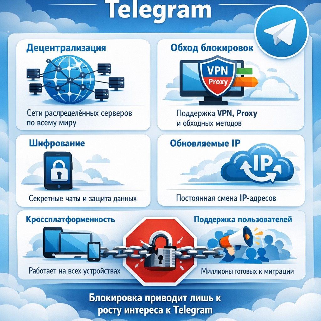 Критика потенциальной блокировки строится не на эмоциях, а на прагматике. Telegram глубоко интегрирован в жизнь общества, и его отключение создаст целый каскад проблем.
