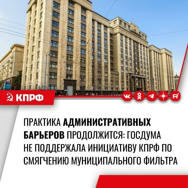 ‼️Думское большинство не поддержало законопроект фракции КПРФ о смягчении муниципального фильтра при выдвижении кандидатур на выборы глав