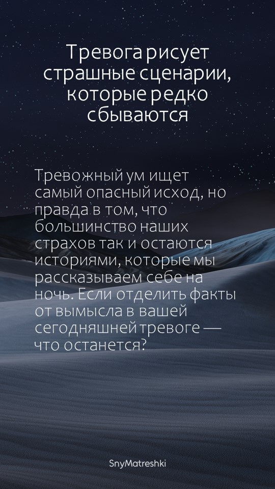 В повседневной суете мы часто теряем контакт с тем, что чувствуем и о чём на самом деле думаем. Эта рубрика — короткие напоминания, которые помогают остановиться и прислушаться к себе. Здесь нет готовых решений, только повод заглянуть внутрь и задать честный вопрос. Читайте, делайте паузу, дышите. И пусть каждый день будет чуть ближе к вам настоящему. Поддержать автора Александра Бóгдан,