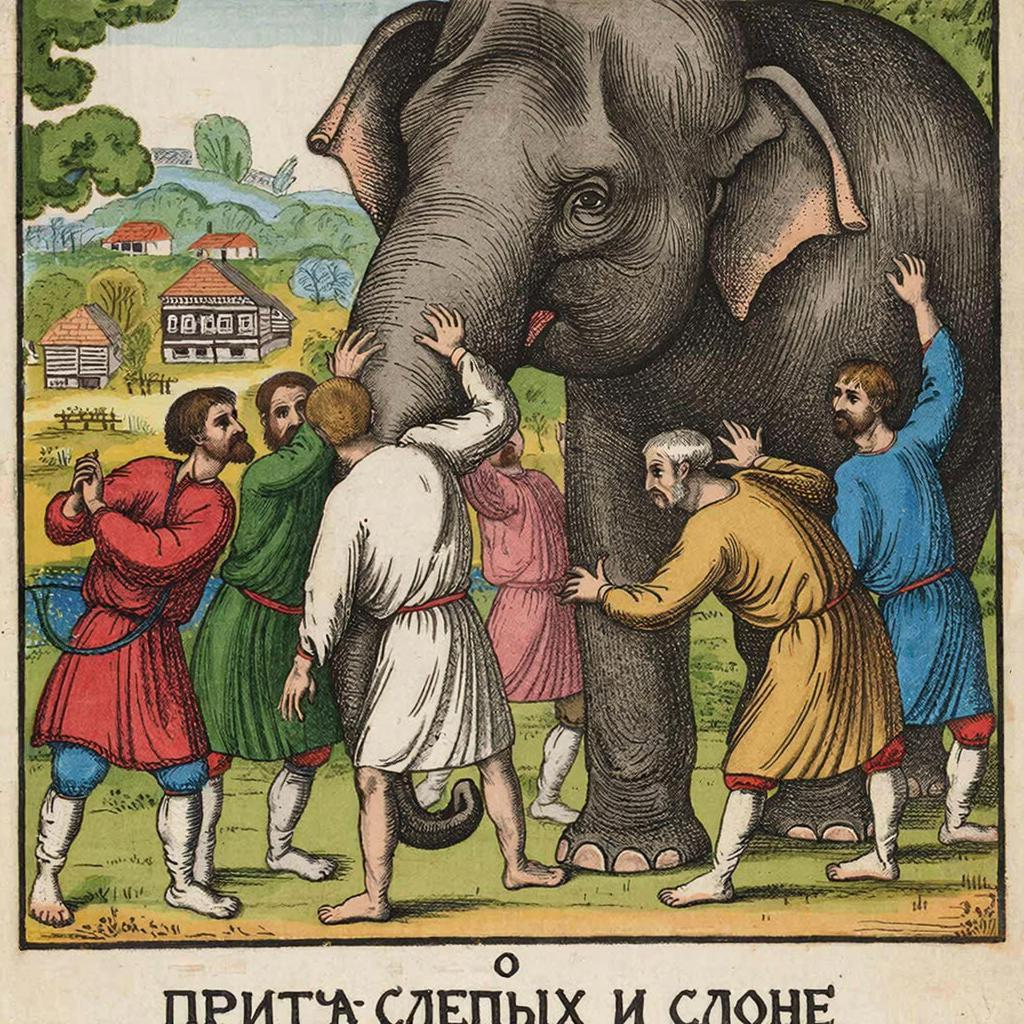 Притча о слепых и слоне В одном далёком и загадочном краю, где горы касались облаков, а реки пели свои вечные песни, жили люди, которые никогда не видели света. Их мир был соткан из звуков, запахов и прикосновений. Среди них ходили мудрецы, которые рассказывали о чудесах, недоступных их восприятию. Но самой большой загадкой для всех был слон — огромное, величественное существо, о котором говорили шёпотом и с трепетом. Однажды в деревню пришли странники. Они принесли с собой удивительную новость: в их краях появился слон. Слепые жители, полные любопытства и надежды, решили узнать, что же это за чудо. Они собрались вместе и отправились в путь, ведомые своими проводниками. Когда они достигли места, где стоял слон, каждый из них подошёл к нему по очереди. Первый, прикоснувшись к хоботу, ощутил его гибкость и силу. Он воскликнул: — Слон — это длинная змея, извивающаяся и живая! Второй, ощупав массивную ногу, почувствовал её твёрдость и устойчивость. Он уверенно заявил: — Слон — это колонна,