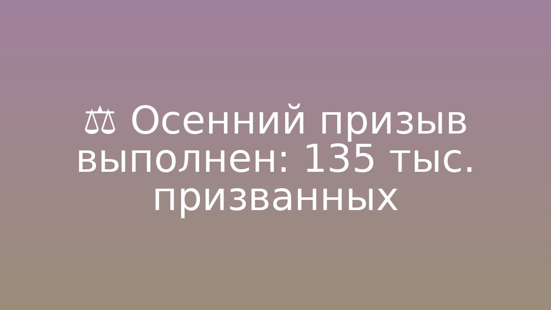 выполнено в полном объеме — призвано 135 тыс. человек. Призыв проводится с использованием Единого реестра воинского учета; отсрочку можно получить без явки в призывную комиссию. Медосвидетельствование, психологический отбор и предоставление отсрочек проводятся на протяжении всего года.