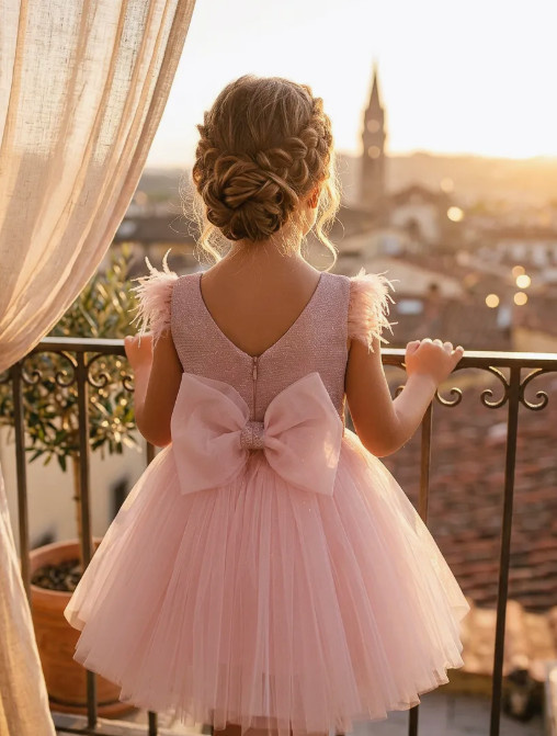 Я обращала внимание даже на то, как пришиты перья, чтобы они не лезли и не мешали ребенку. Когда я увидела это платье, сразу поняла — оно наше, прям ёкнуло внутри 💕 Бант сзади добавляет невероятную нежность и делает образ более праздничным.