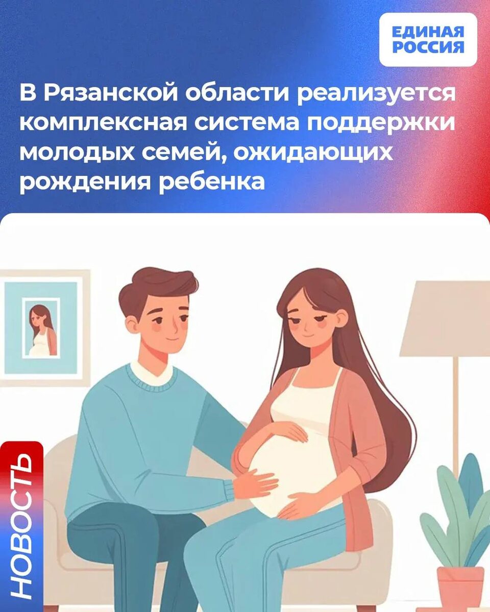 Единым координатором выступает Комплексный центр социального обслуживания населения «Семья» г. Рязани. Основные меры поддержки: • Единовременная выплата для беременных студенток – 120 тысяч рублей; • Социальное такси для удобства молодых семей; • Координационные центры в вузах для помощи студенческим семьям; • Возможность проживания в семейных комнатах в общежитии и скидки на обучение и посещение бассейна; • Школа будущих родителей «Семья в ожидании счастья», где проводятся лекции и консультации; • При регистрации брака в регионе молодоженам выдается сертифика «Семья 62» для бесплатного медицинского обследования и консультаций по репродуктивному здоровью. #ЕдинаяРоссия #КрепкаяСемья62 👻 МАХ | 💙 ВК | 📝 ДЗЕН