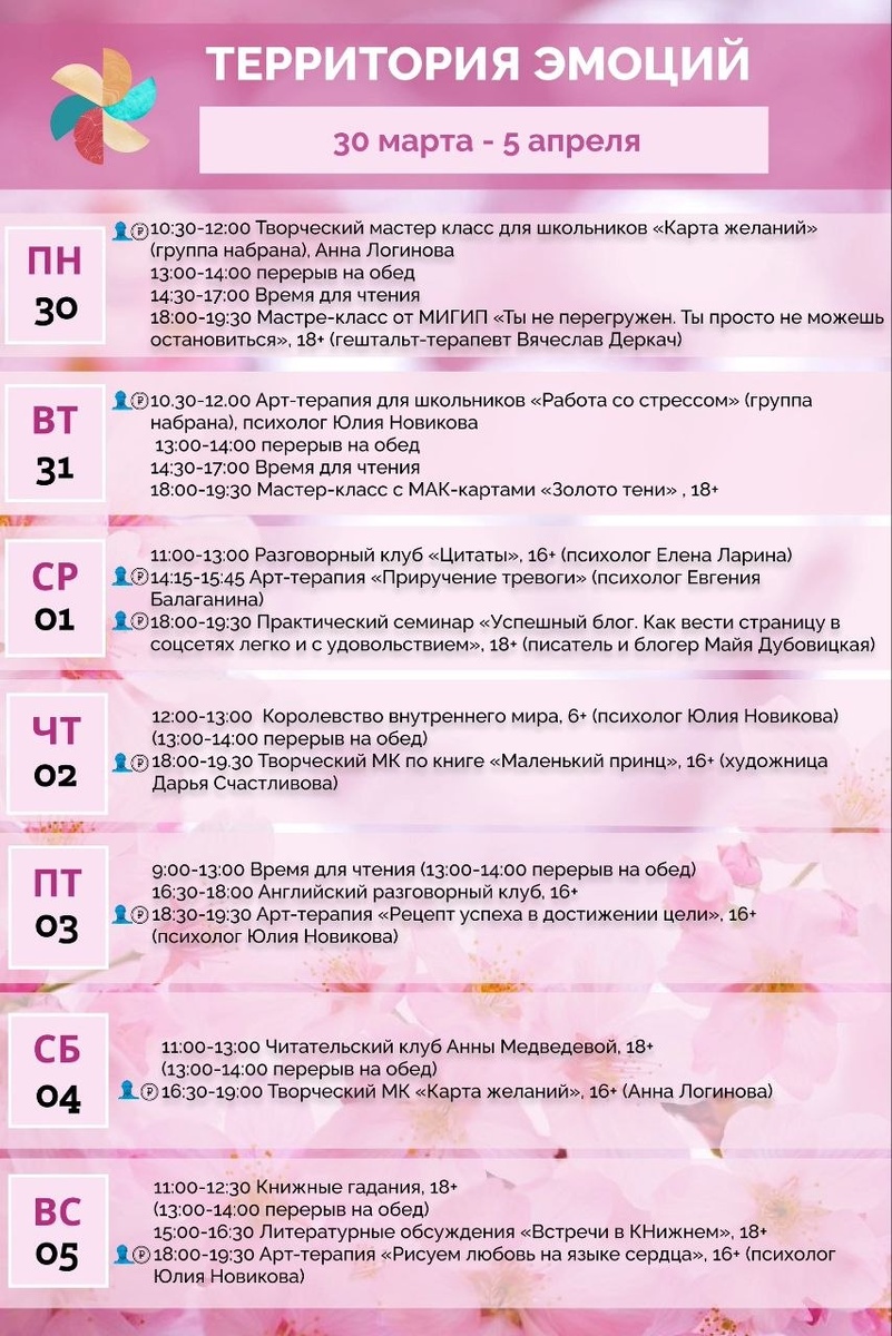 Расписание Территории эмоций с 30 марта по 5 апреля 🌸