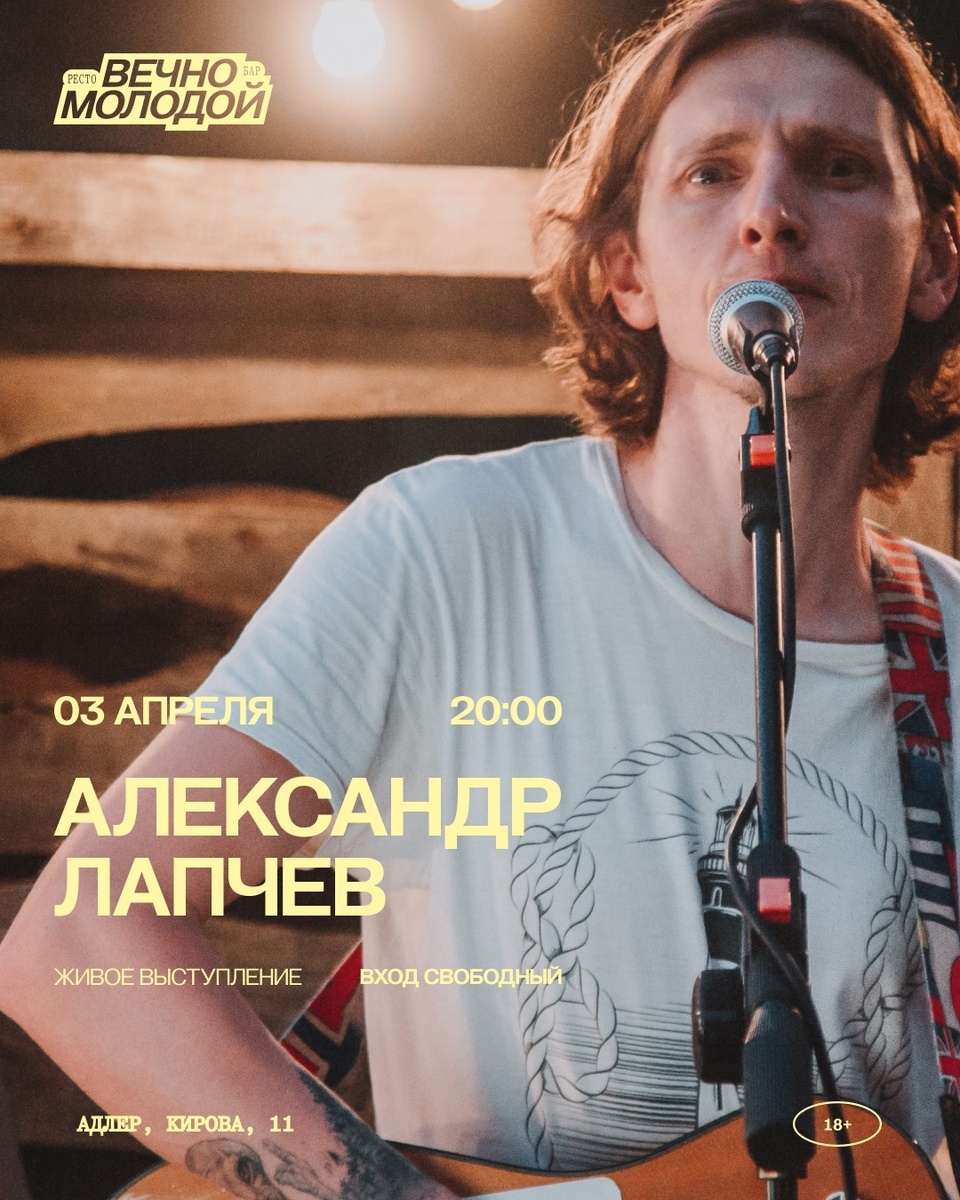 Человек-оркестр. На своих выступлениях в реальном времени с помощью гитары и клавишных создаёт семплы, которые складываются в аранжировки. В его репертуаре — сотни хитов: от классики британской и американской музыки до современных русских композиций в авторском исполнении. Начало в 20:00, вход свободный Адлер, Кирова 11