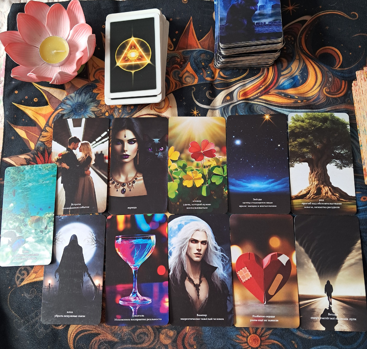 Этот расклад на оракуле «Полнолуние» показывает глубокую смену декораций: одни энергии входят в вашу жизнь как дар, другие уходят окончательно, чтобы освободить место. Итоговая карта Рыбы говорит, что всё это будет происходить через поток, доверие и завершение большого эмоционального цикла.