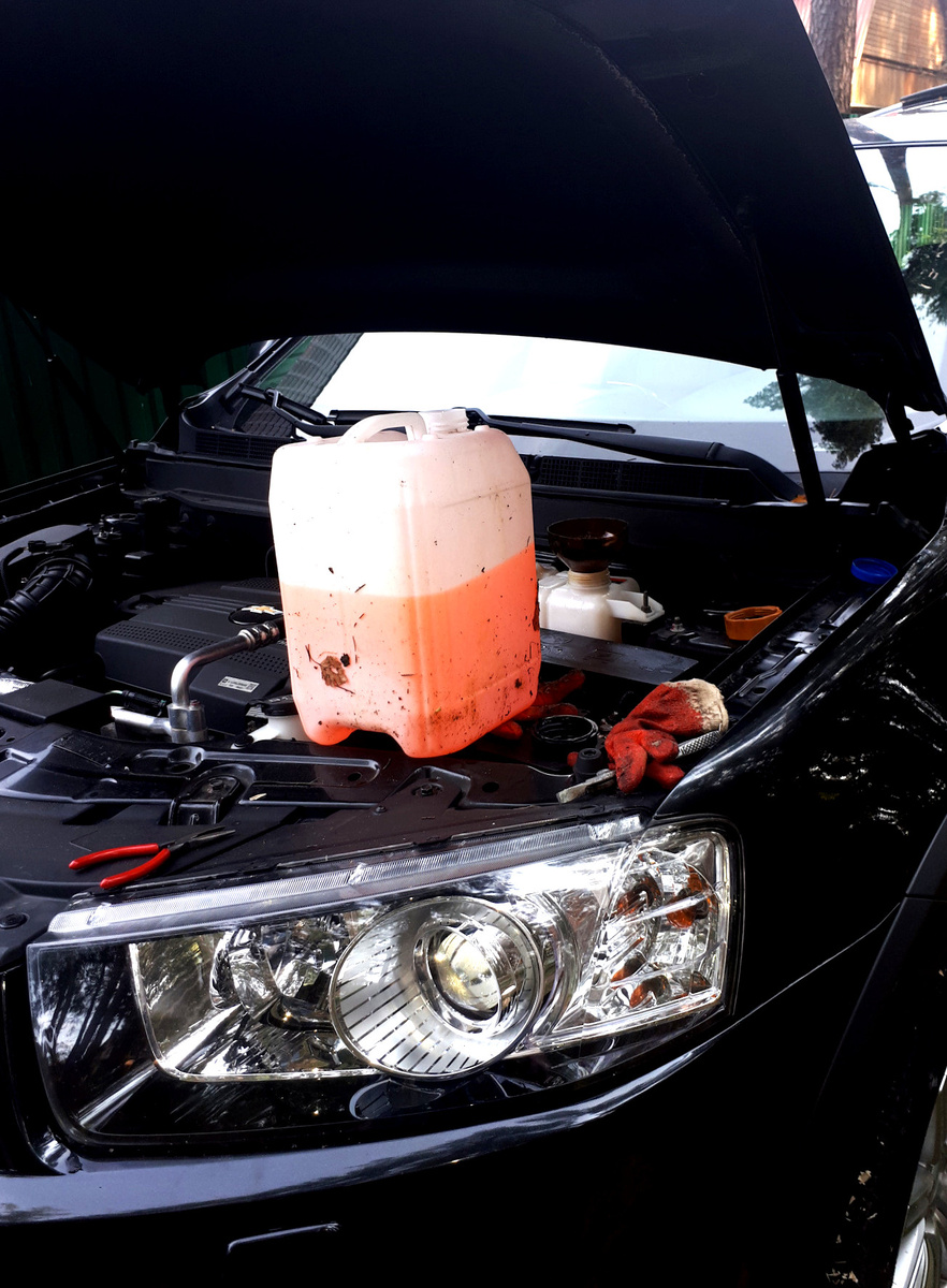 Саня предложил не просто слить старый антифриз и залить новый. «Систему надо промыть», — говорит. И я согласился, раз уж взялся за дело.