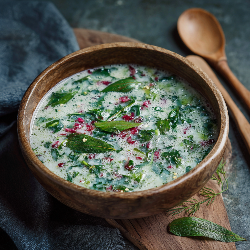 Привет, дорогие гурманы и ценители необычных вкусов! Сегодня я хочу рассказать о том, как готовить окрошку с хреном - блюдо, которое не только освежает в летнюю жару, но и удивляет своим характерным пряным вкусом. Окрошка - это кулинарный символ русской кухни, а добавление хрена превращает этот знакомый суп в истинно праздничное и бодрящее блюдо. Исторически окрошка появилась на столах купцов и помещиков ещё в XIX веке и была способом использовать свежие овощи и зелень с собственных огородов. Хрен же издавна ценился за остроту и целебные свойства, и не случайно его стали добавлять в холодные супы: он придавал блюду бодрости и пикантности, а также отлично сочетался с мясными и овощными ингредиентами. Классическая окрошка на квасе с хреном. Ингредиенты: Квас - 1200 г Картофель - 400 г Колбаса варёная (или отварное мясо) - 300 г Огурцы свежие - 200 г Яйца куриные - 4 шт. (240 г) Редис - 150 г Зелёный лук - 40 г Укроп - 30 г Петрушка - 20 г Хрен свежий - 30 г Сметана - 150 г Соль - 8 г Пер