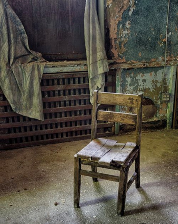 Стоит он посреди пустой комнаты в заброшенном доме на табурете, а над ним на матрице потолка петля болтается.